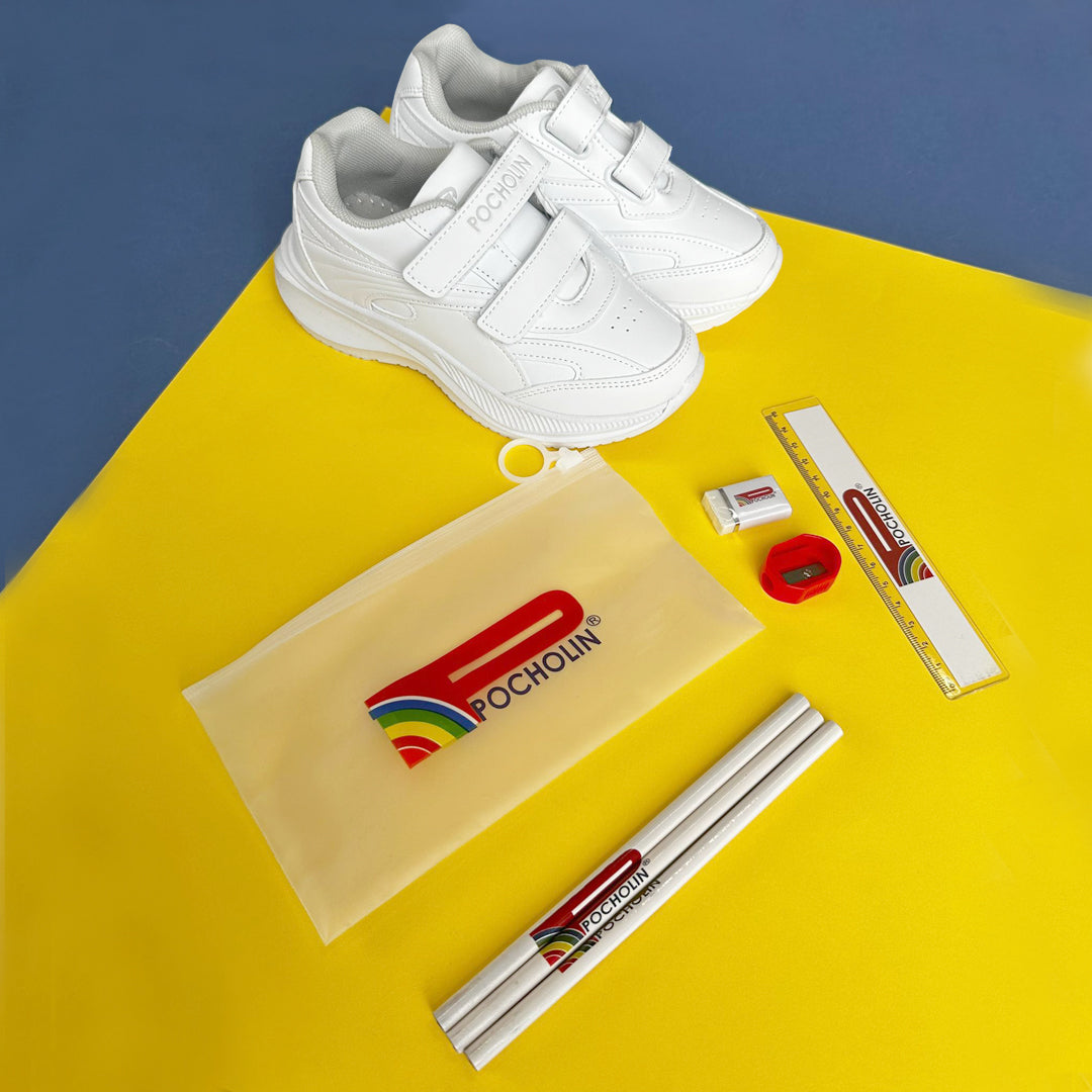 Zapatos Deportivos Colegial de cierre mágico unisex Pocholin BLANCO (INCLUYE CARTUCHERA)